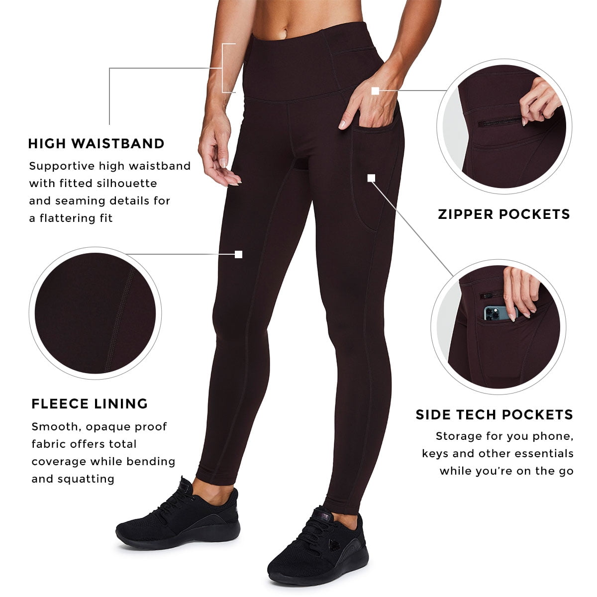Active Life Ladies Fleece Leggings With Side Zipper Pockets
