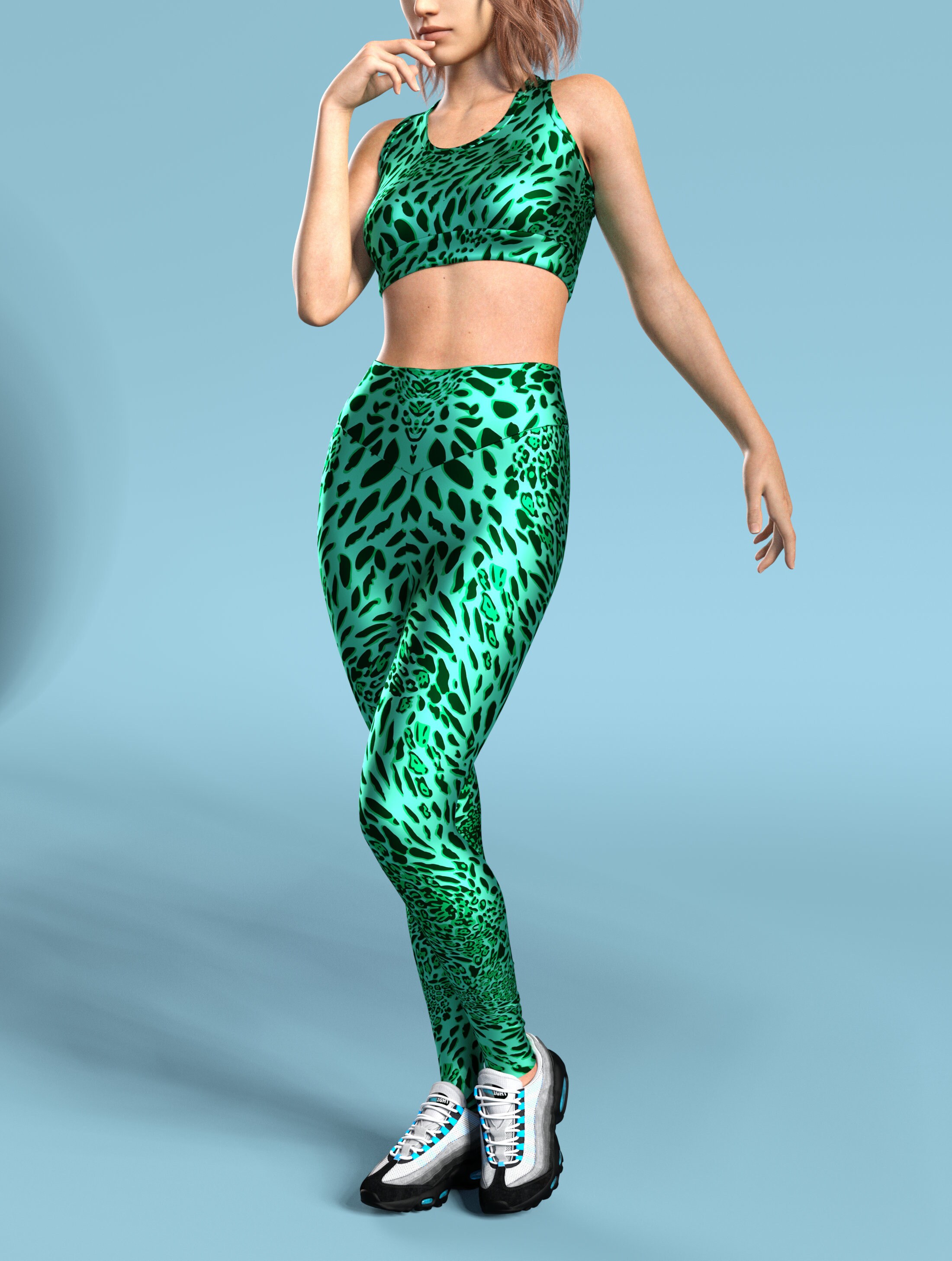 Green Leopard Print Gym Leggings
