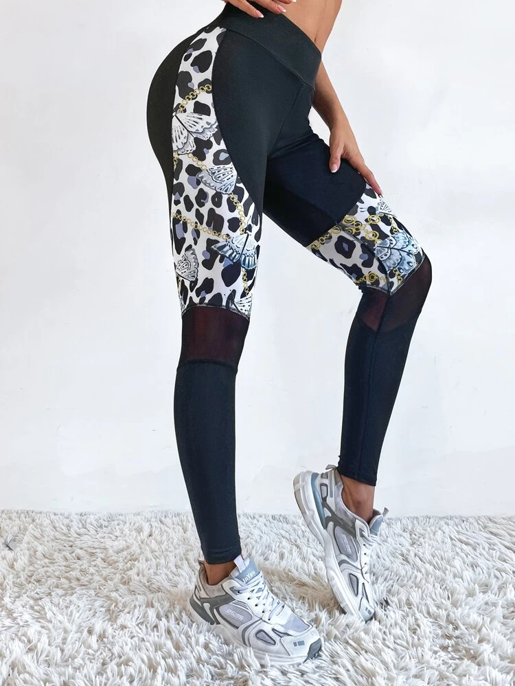 Grey Leopard Print Gym Leggings